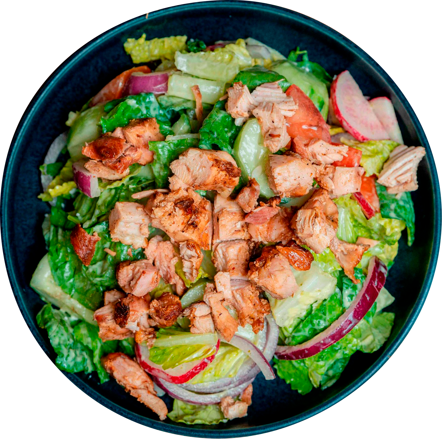 Greens and vegetables sourced from our local farm when available.